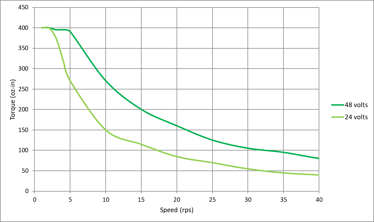 第三個誤區(qū)是使用 12 伏電源為步進(jìn)電機(jī)供電。其實(shí)無論是任何類型的電動機(jī),電源電壓都與電動機(jī)速度直接相關(guān)。當(dāng)向系統(tǒng)提供更高的電壓時,電機(jī)會達(dá)到更高的速度。如果步進(jìn)電機(jī)被指定為額定電壓,則通常不超過步進(jìn)電機(jī)的繞組電阻乘以額定電流。如在下圖的曲線中可以看到使用 48V 電源時使用 12V 電源,電機(jī)將無法達(dá)到預(yù)期扭矩。