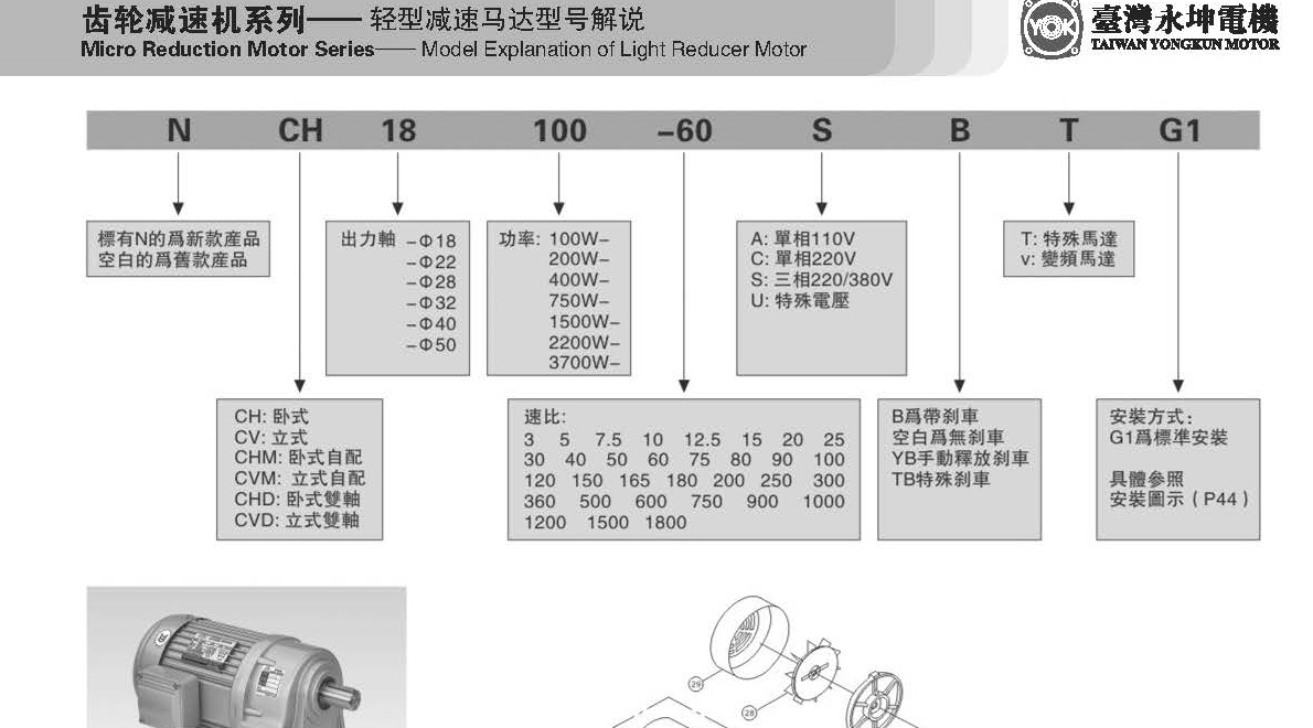 永坤齒輪減速電機(jī)NCH22-100-40S型號介紹