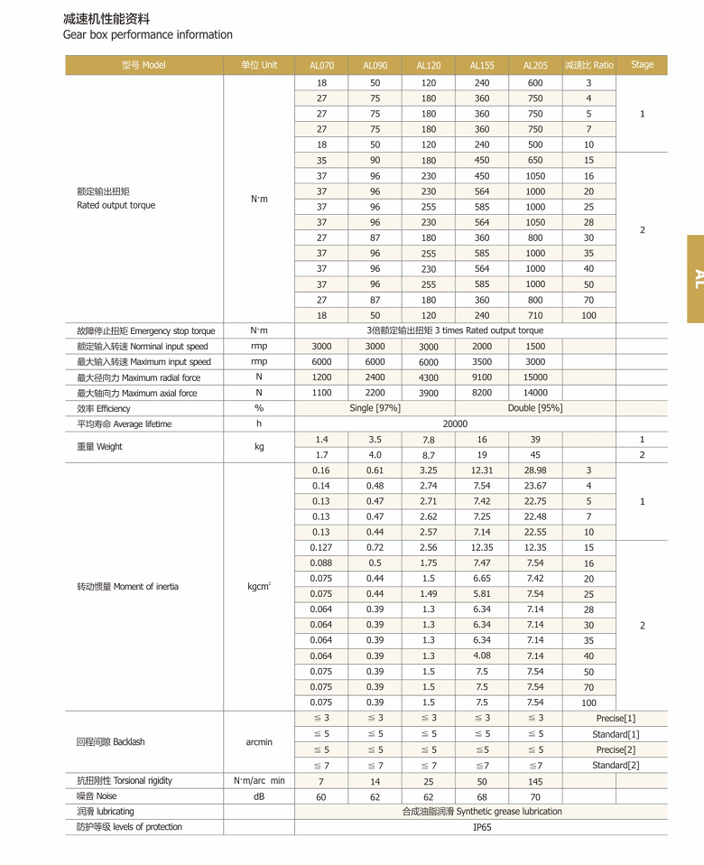斜齒輪高精密型行星減速機AL70型號資料及尺寸圖