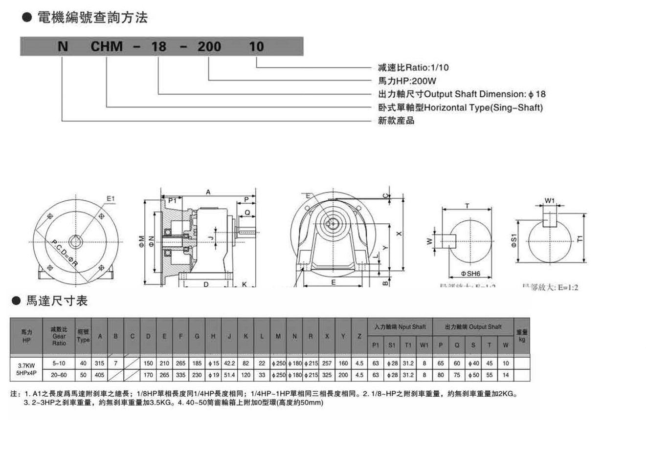 CHM自配型減速機,可配電機功率100W,200W,400W,750W,1500W,2200W,3700W