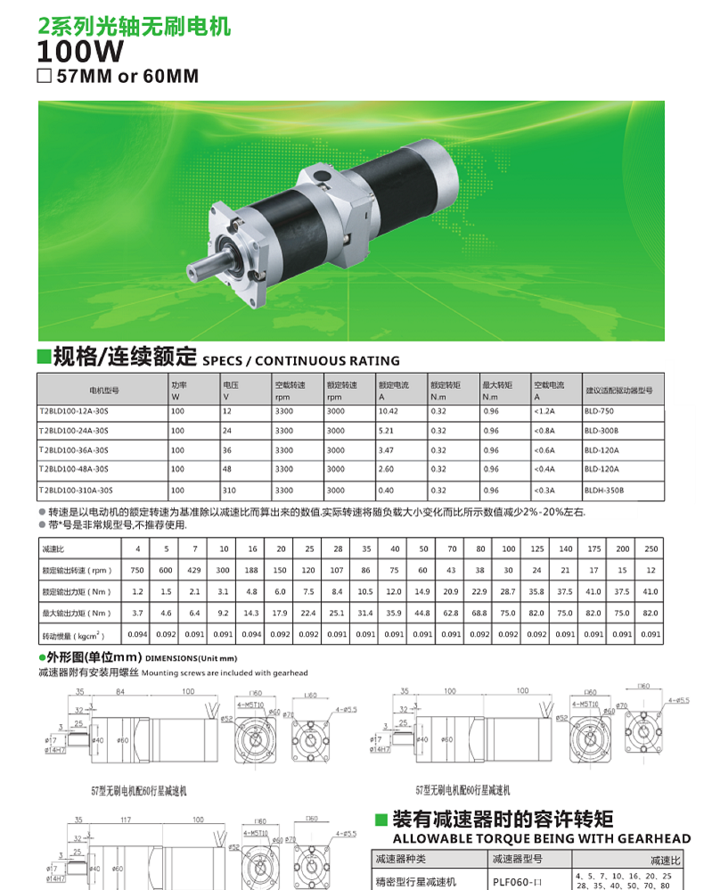 名稱:2系列100W直流無刷電機(jī)配行星減速機(jī)