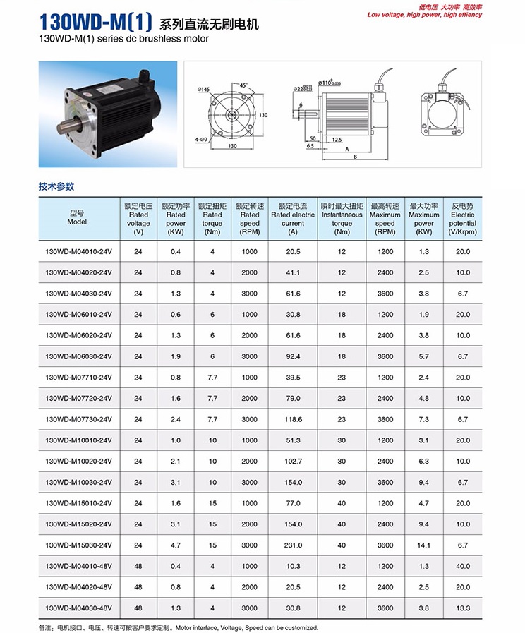 何為光軸無刷電機(jī),即是指只有無刷電機(jī)的時候,而沒有帶減速機(jī)的時候,把無刷電機(jī)作為光軸無刷電機(jī)。帶了減速機(jī)的電機(jī)也稱作減速電機(jī),多了一個電字,是指電機(jī)。如下圖為光軸無刷直流電機(jī)130系列的外形尺寸圖,通過以下尺寸圖我們也可以發(fā)現(xiàn)無刷電機(jī)相比其它種類電機(jī),即使是在相同功率的情況下,無刷電機(jī)都是外形尺寸相當(dāng)小的,這也是選用無刷電機(jī)的一大特點。即體積小,從而滿足設(shè)備對安裝空間有要求的情況。